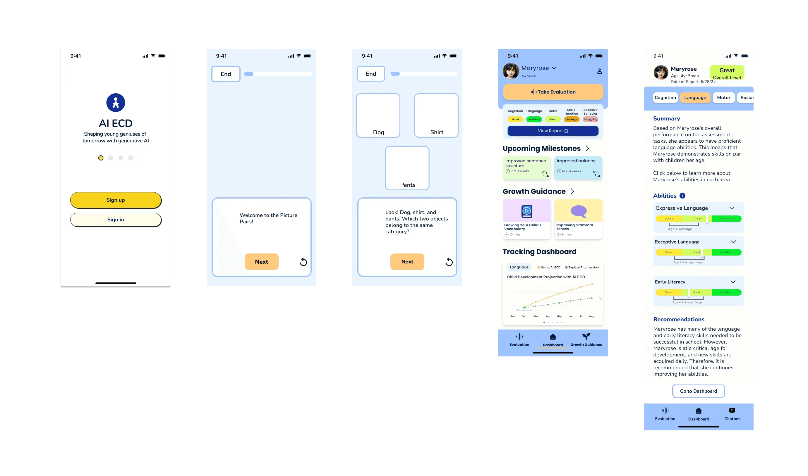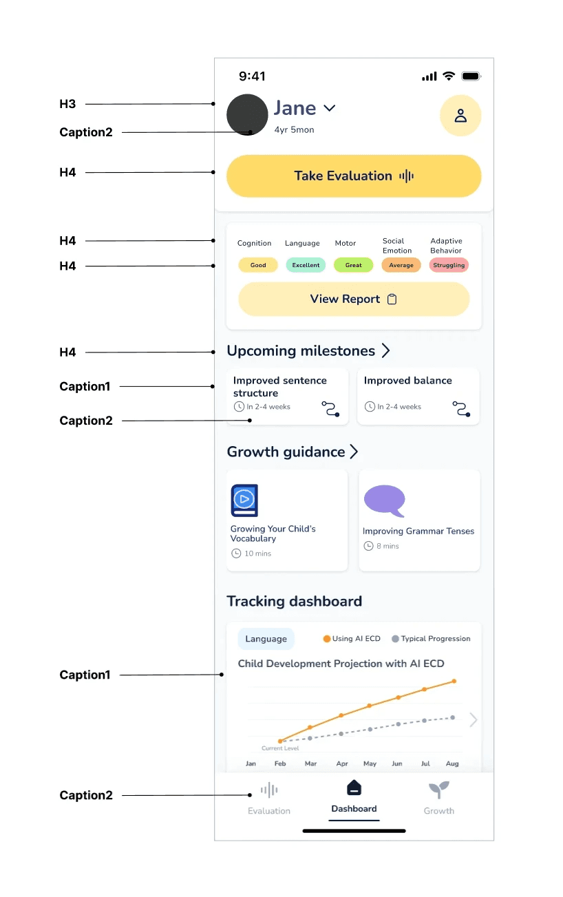 I joined at the whiteboard stage to build an AI app that guides parents through personalized tasks and tracks child development across onboarding, daily use, and progress tracking.
