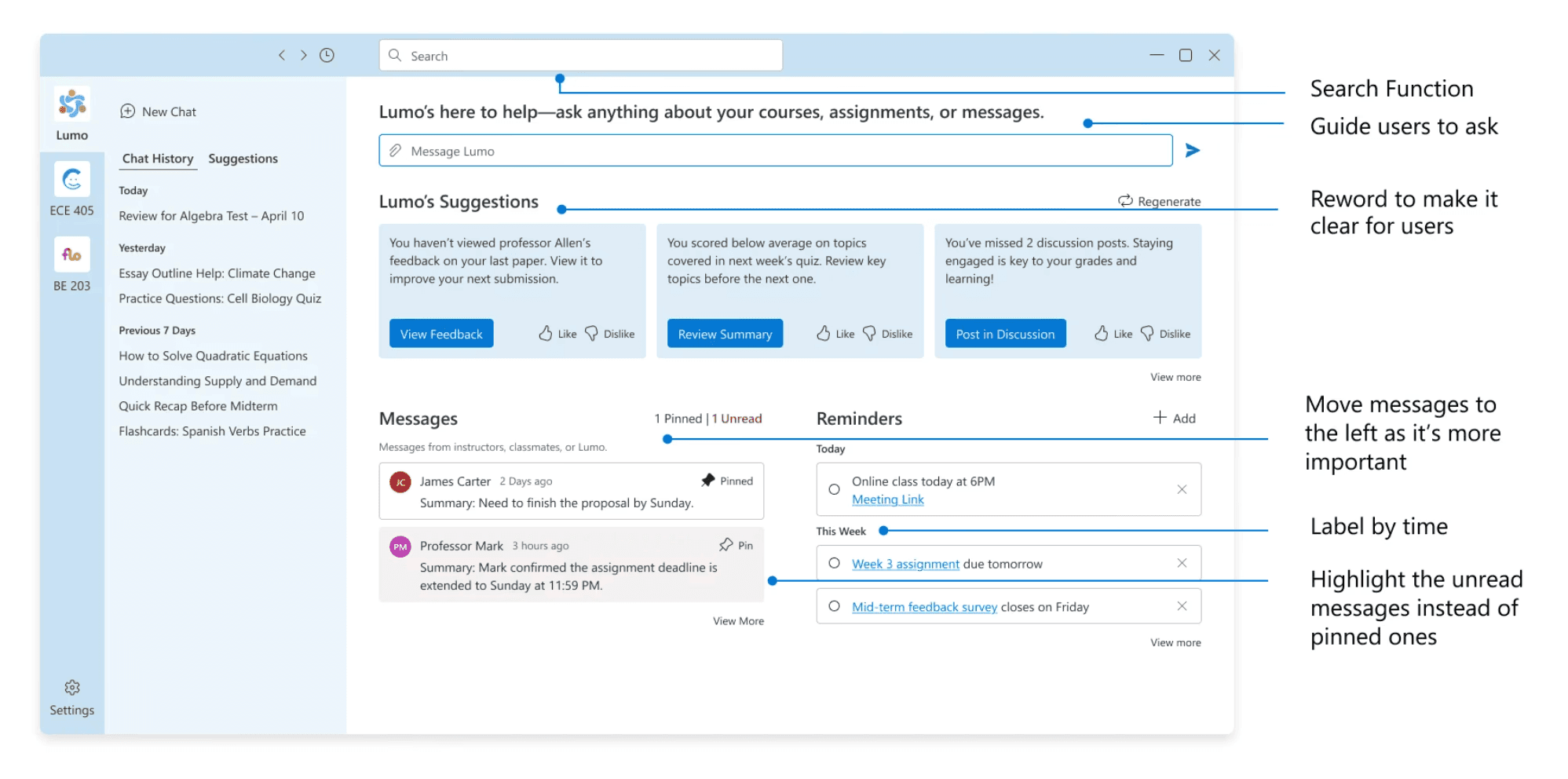 All-in-one communication hub featuring smart message organization, search, and office hours scheduling.