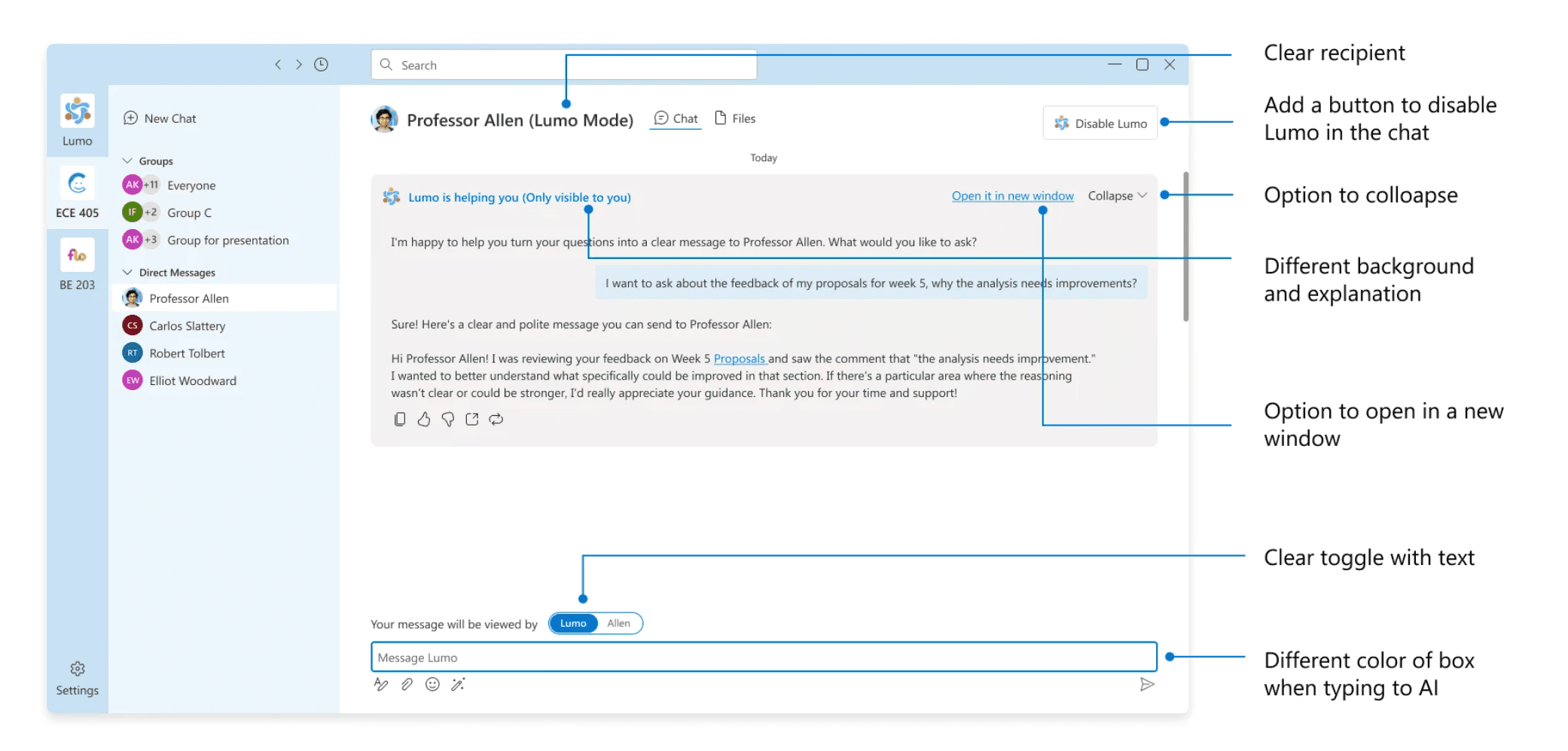 I conducted design critiques with 2 Microsoft designers, presenting prototypes at each stage for iteration. These sessions focused on addressing AI transparency and integration concerns.